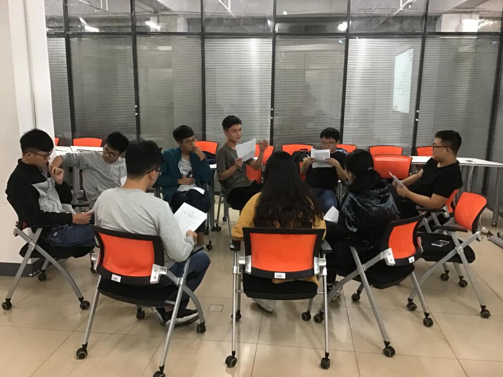 团辅开始,杨勐同学简单向大家介绍了生涯规划的概念。经过了一个假期,同学们之间难免会感到陌生,为了使活动氛围更加热烈,杨勐同学准备了暖场的小游戏“凑零钱”,男生代表5角钱,女生代表1块钱,由主持人随机喊出一个零钱数额,其他人立刻凑成规定数额,没能凑成的则被淘汰。经过几轮游戏,有些同学渐渐掌握了窍门,反应迅速,成功地笑到了最后。暖场游戏结束后,团辅气氛也被成功地调动了起来。