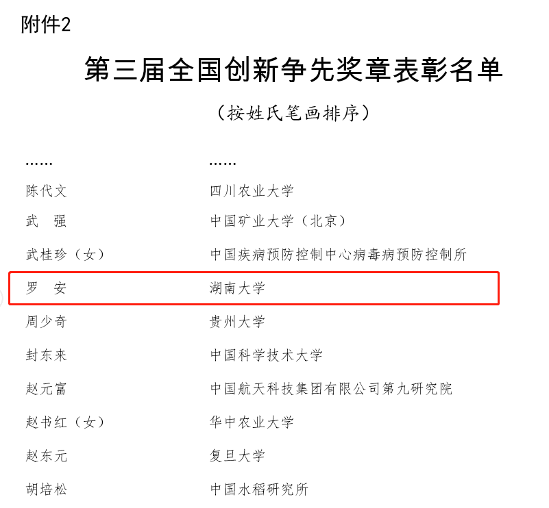 5月30日,庆祝全国科技工作者日暨全国创新争先奖表彰大会举行,大会宣布了第三届全国创新争先奖获得者名单并为获奖者颁奖。公司罗安院士荣获第三届全国创新争先奖章(湖南省唯一),李树涛教授荣获第三届全国创新争先奖状。