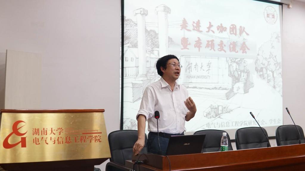 作为电力驱动与伺服技术的学科带头人,黄守道教授带领自己的科研团队一直致力于特种电力驱动与伺服、永磁变速恒频发电等技术领域的研究。在此次交流会中,黄守道教授围绕研究课题、人才培养、团队构建等三个方面向同学们分享了自己的科研成果与心得。正是因为怀揣着年少时的热忱之心,黄守道教授在电机领域辛勤耕耘数十载而不觉倦怠。他以自己的成长经历为例,告诉大家“兴趣是最好的老师。”整场交流会,黄守道教授深入浅出,结合理论研究与实践操作层层展开,给大家带来了一场生动精彩的学术盛宴。