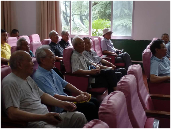 来到党课教室,全体到会的老同志学习习近平主席“新时代中国特色社会主义思想是全党全国人民为实现中华民族伟大复兴而奋斗的行动指南”的讲话录音。