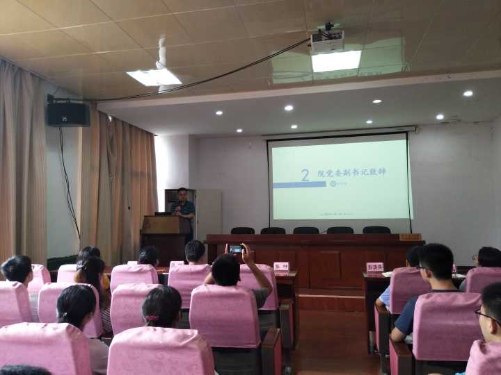 接下来,2018级辅导员助理谭懿玲同学发言。她阐述了培训过程及考核的几大要素:整个培训内容分为十讲,每次培训都有相对应的老师,41名员工助理被分为7个小组,各小组成员需要主动联系对应的培训老师并提供帮助;考核在培训过程中进行,分组协助老师完成培训任务情况,出勤情况、培训中表现情况,分组谈话情况以及笔记、分享情况等都将成为决定最终结果的因素。考核过程严格透明,希望各位候选人在培训过程中全情投入、潜心学习。