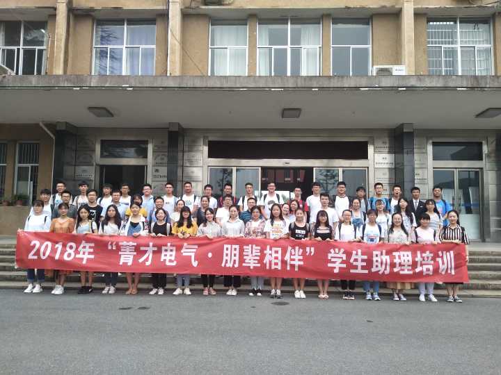 最后,出席本次启动仪式的老师们和2018级迎新团队在电气院楼下合影留念,为学院2018年“菁才电气·朋辈相伴”员工助理培训工作拉开了序幕。