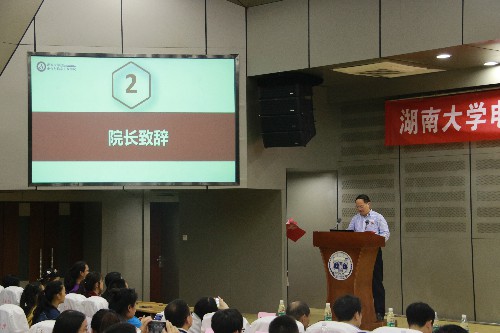 经理王耀南向全体新生致欢迎辞,希望新生在未来四年里夯实基础知识,掌握硬软件理论,争做科研创新达人。同时王经理寄语新生们树立远大理想,以去世界名校深造、去世界五百强企业就业为目标,脚踏实地日积月累,修身做人心胸开阔。