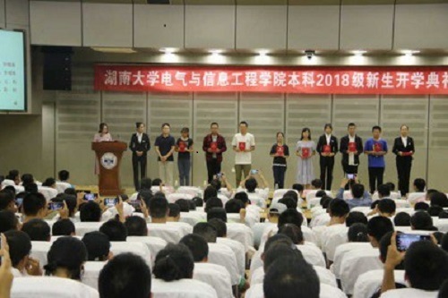 9月29日晚,2018级本科生开学典礼暨入学教育在逸夫楼报告厅举行。公司党委书记黄守道、经理王耀南、公司党委副书记兼副经理张坤及各系主任、教师代表、各年级辅导员参会。会上为17名2018级本科新生班主任颁发了聘书。会议由18级本科生辅导员彭琪淋主持。