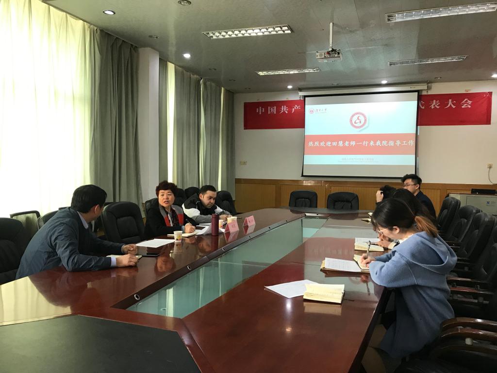 会议伊始,陈军书记对田慧老师视察电气院少数民族工作表示欢迎,并向学工办老师们介绍了少数民族员工基本情况和优秀典型。随后,陈军书记向田慧老师一行介绍各年级辅导员,以方便日后少数民族工作的开展。田慧老师也表示希望加强与各位辅导员的交流,更深入准确地了解各少数民族员工情况。