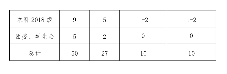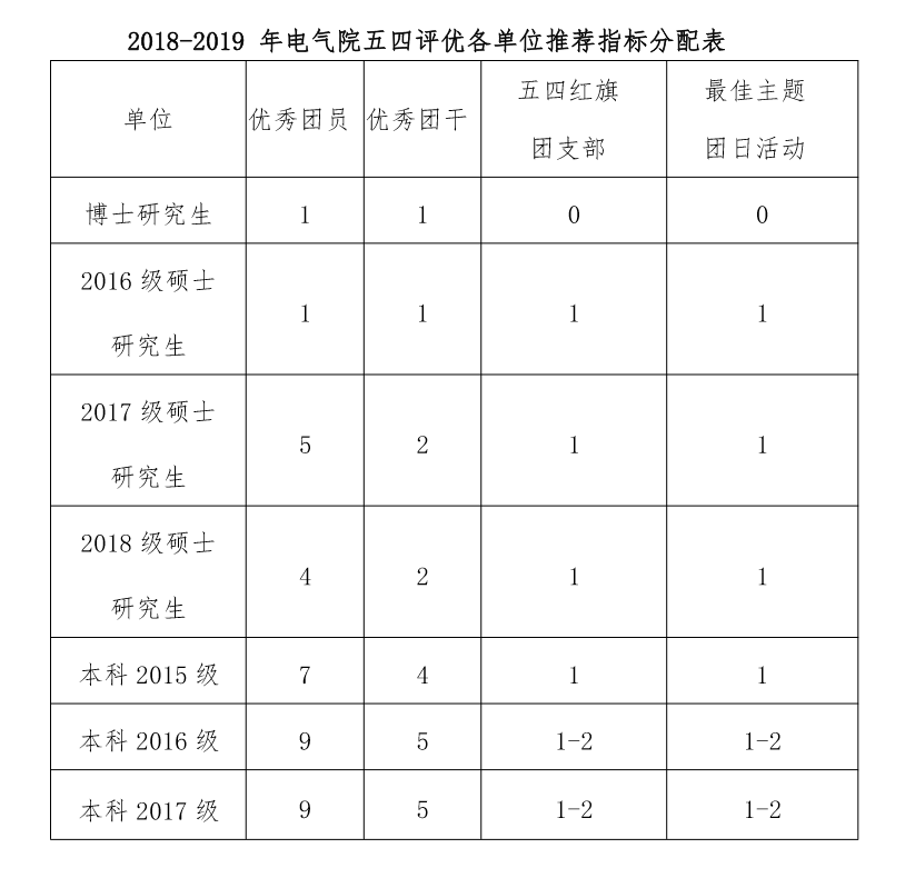 注:本次评选开设个人申请方式。个人可经学院和相关职能部门审核推荐,直接参评优秀团员和优秀团干。具体的分配名额如下: