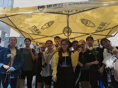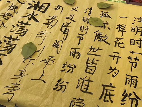 在活动开展过程中,工作人员招待驻足于帐篷前的同学们,引导同学们参与活动。参与活动的同学仔细阅读了展板上的清明节传统习俗以及部分烈士事迹,用毛笔在宣纸上书写下对逝者的美好祝愿,以及有关清明节的诗词,古风古韵,徐徐“道”来。同时,同学们品尝了清明节传统食物——青团,也接受到赠送的菊花。而活动进行期间,也有不少同学为该活动提出了意见建议,并积极召集更多的同学来参与,为活动的顺利开展助力。
