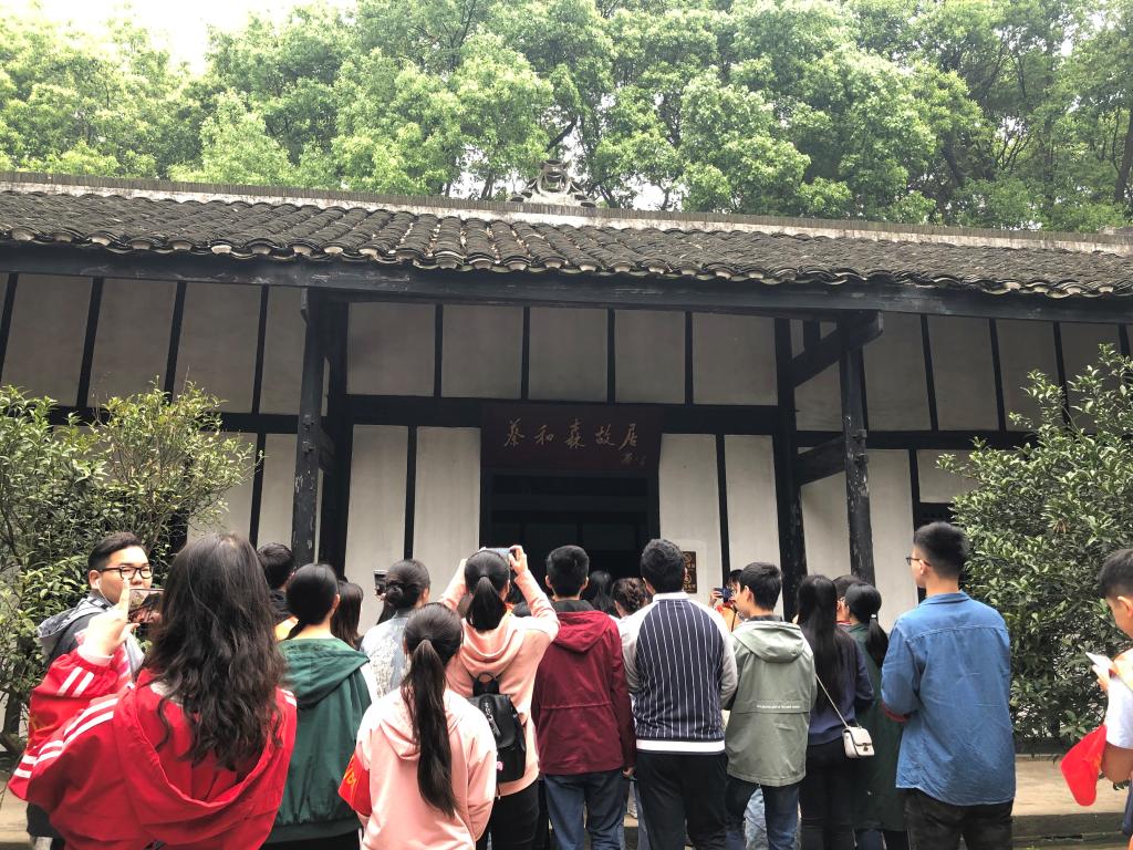 早上9点,天气凉爽,在团支书陈传闻同学的带领和组织下,同学们统一乘坐公交到达新民学会旧址进行参观。1918年4月14日,毛泽东、蔡和森等13人在此开会,成立了新民学会,是“五四时期”以员工为主体的众多进步团体中成立最早的,并于1920年成立湖南共产主义小组,为中国革命史谱写了光辉的一页。跟随讲解员的步伐,同学们首先来到了蔡和森故居,在这里近距离感受一群进步青年的生活气息。