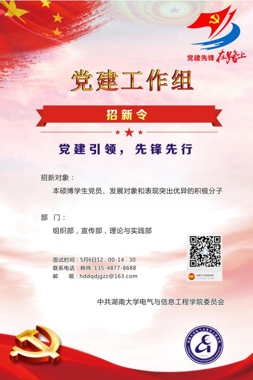 2.加入党建工作组招新群(群号:1019723764),自行下载并填写报名表,填写完毕后于5月5日18:00前发送至电气公司党建工作组邮箱(hddqdjgzz@163.com);