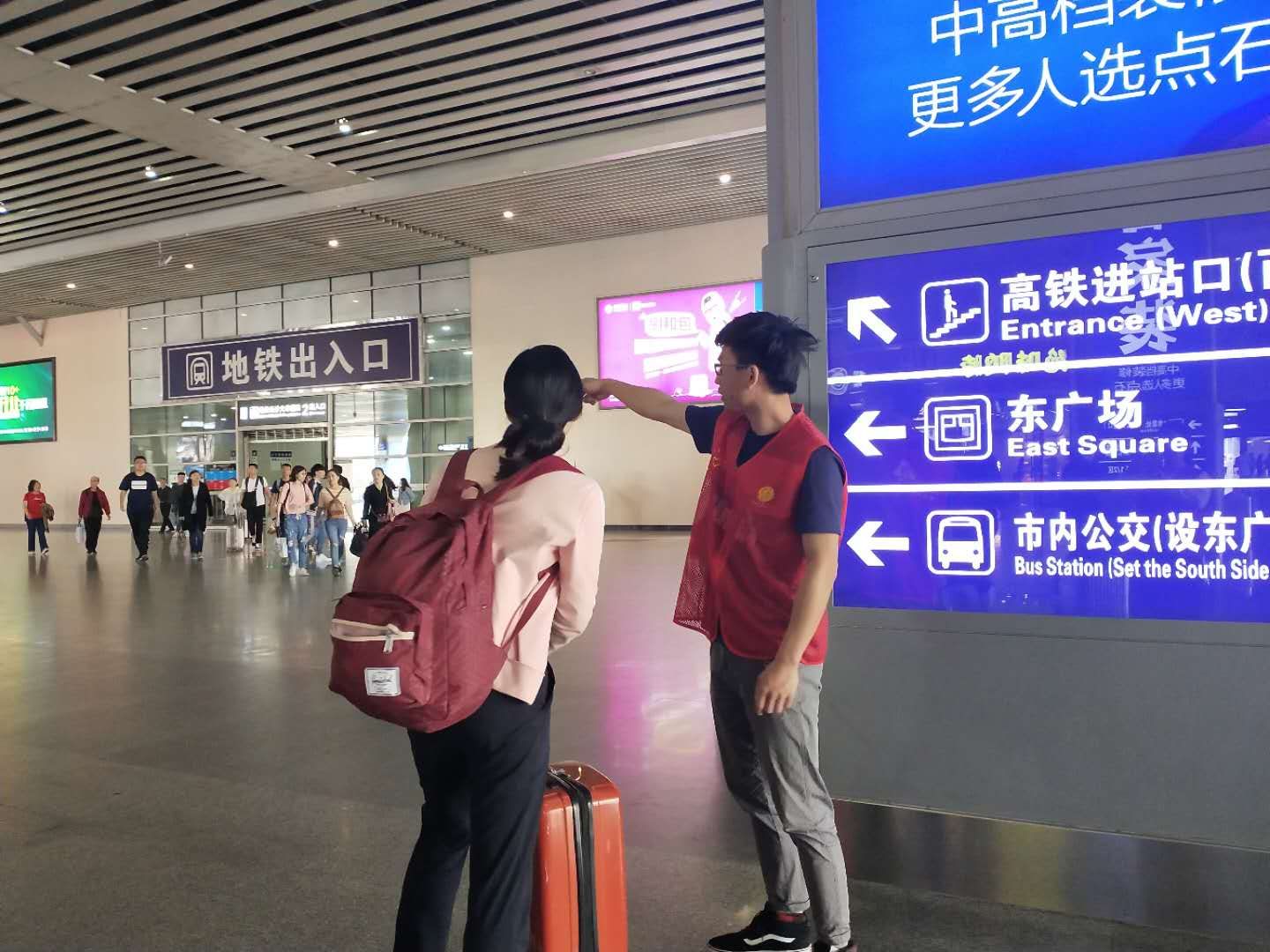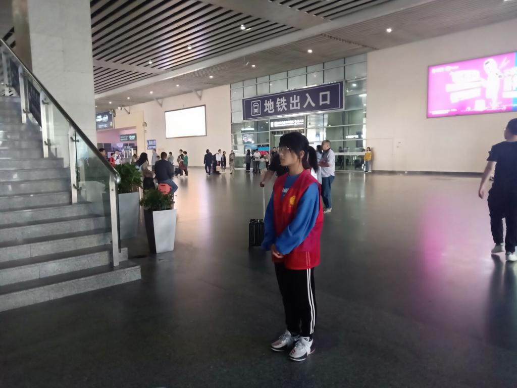 当然志愿者的任务远不只这些,当遇到一些年龄大的乘客对于高铁的乘坐方式不是很熟悉的情况时,志愿者们便耐心对他们进行讲解和引导,保证他们能够安全、快捷地出行。同时,对于乘客们不了解高铁站分布情况及出口路线,志愿者也会帮其寻找予以指引,在这样一个充满温暖且善意的循环下,不仅乘客们得到了帮助,志愿者们也对路线更加熟悉,在接下来的志愿活动时间里对各项任务越来越熟练,更好地为乘客服务。