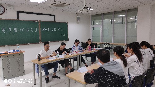 “菁英电气·朋辈相伴”系列活动旨在从学院的高年级同学中选拔出一批优秀员工,组建一支以“传、帮、带”为工作理念的员工助理团队,从而做好电气院本科2019级新生的迎新、入学教育及军训工作,引导新生更快、更好地适应老员工活,同时新生在大一学年里能够得到及时帮助和引导。此次的压力面试则旨在考查面试者在面对一系列军训带班中遇到的突发情况的反应能力以及语言表达能力。