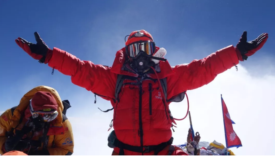 员工周和平在这一刻成功登顶珠峰,