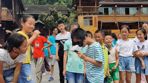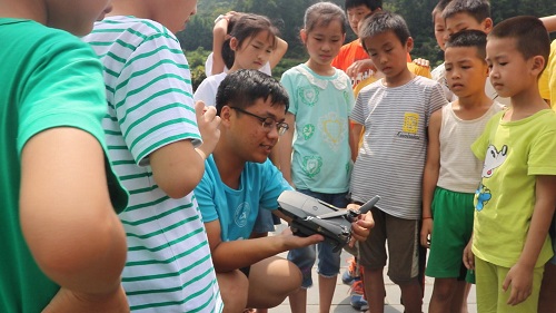 在继前几天传统课程以及更加趣味、深奥的实验课后,为体现“三下乡”中的科技“下乡”,给孩子们一个“七彩假期”,将现代化生产方式、生活方式和相关知识带给孩子们,团队将携带的无人机、VR眼镜、太阳能小车等科技产品展现给大家。当这些科技产品展示出来时,孩子们纯净透亮眼睛瞬间散发出光芒,双手撑在桌面,上体微倾,伸着脖子想要触碰却带着一丝胆怯。无人机叶桨的急速旋转带动着整个机身直线向霄云飞去,“哇”的一声声惊叹从孩子们口中发出。接下来给每个孩子都体验了VR眼镜,从眼镜中感受虚拟和现实的结合,利用VR眼镜让大家看到了“千年学府”岳麓书院的全景,感受其“惟楚有才,于斯为盛”的氛围。“中国的每一块领土都是不可分割的。”地理课上,老师展示出中国的地图时铿锵有力地说道。这天的课程在孩子们奔跑的身影、空中旋转的羽毛球中结束了。带着满心欢喜,孩子们陆陆续续被家长接回家。