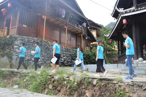 与此同时,调研团队出发分成小组继续在岩脚村开展调研活动。据了解,岩脚村曾经是国家级贫困村,村子通过对旅游资源和侗寨文化的挖掘与开发,实现了全面脱贫。在此决胜全面建成小康社会的关键之年,开展对岩脚村的调研,有着十分重要意义。走访过程中,团队成员了解到:近年来,在党的领导下,乡镇政府的支持下,岩脚侗寨大力发展旅游产业、打造民族特色是岩脚村得以全面脱贫的关键。村子里很多人家办起了民宿,为游客提供饮食和住宿,带动村子里经济的发展。在当地旅游局的支持下,岩脚村成立民俗文化表演公司,组织当地村民们参与到民俗文化的表演中去,将侗族的侗琵琶和女儿国的文化特色展现出来,既传承了侗寨文化,又增加了景区的吸引力,得到了当地村民的大力支持。走访过程中发现,村民们十分肯定团队的工作,村子里没有学校,团队的支教在一定程度上弥补了这样的遗憾,村民表示希望团队之后可以继续来到这里开展活动。