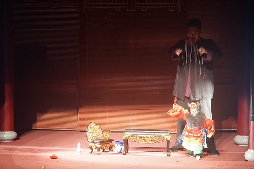 接着,团队成员们来到泉州木偶剧院,观看提线木偶演出。泉州提线木偶戏是中国首批国家级非物质文化遗产保护项目、世界级非物质文化遗产项目,始于秦汉时期的悬丝傀儡,拥有两千多年的悠久历史,多次登上了国家大型舞台进行表演,也同时荣获了国内外各种奖项。泉州提线木偶戏传承保护中心多次出访70余个国家和地区进行文化交流,并在国内外都享有盛誉。这次,剧团为大家呈现了《若兰行》《钟馗醉酒》《青春梦》等著名曲目,数十根线在演员手中翩翩飞舞着,将木偶的每一个动作每一处小细节都展现的十分细致,而逼真生动的演出效果也让大家惊叹不已。