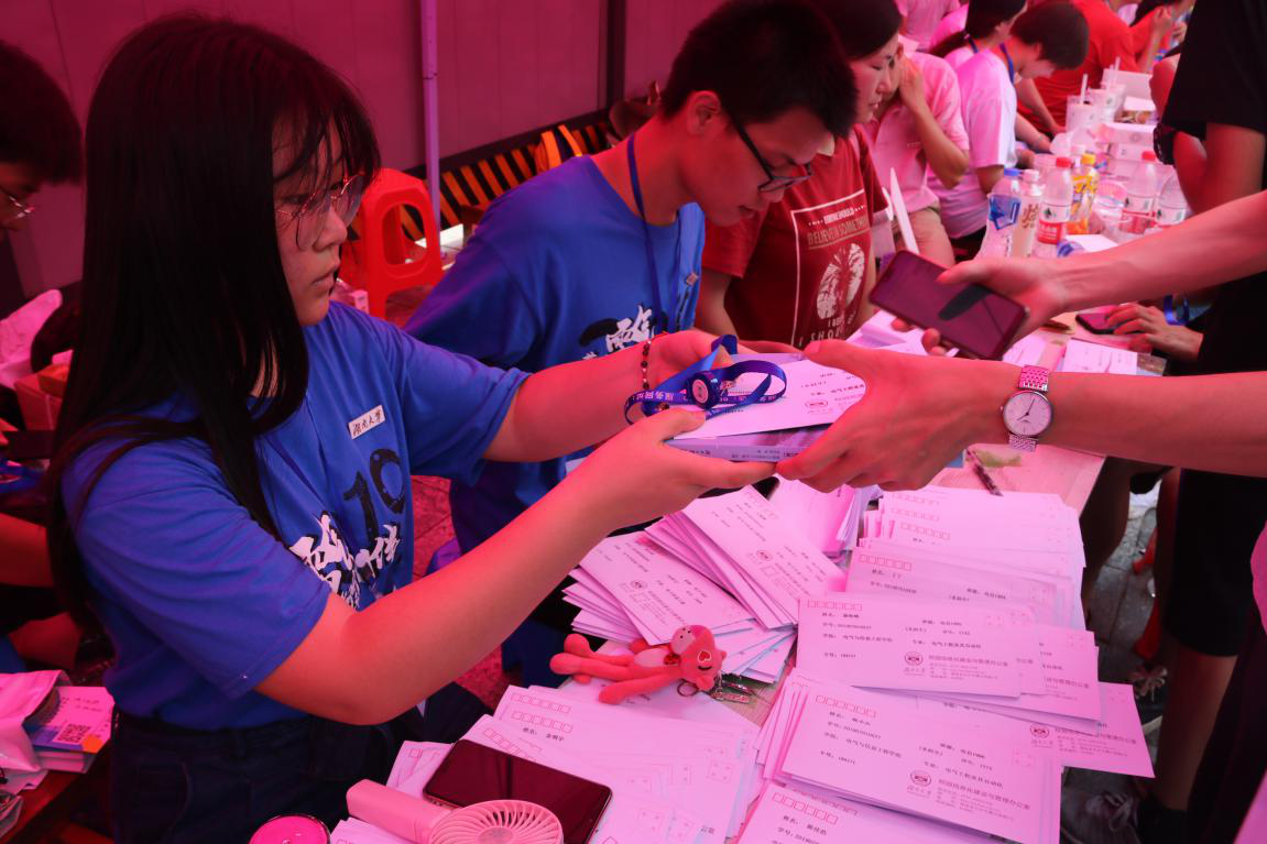 报到的第一站是东方红广场。看,员工助理们正在仔细地核对新生的信息,耐心地引导他们扫码报到、办理绿色通道,笑容洒在每一个人的脸上。与此同时,志愿工作也如火如荼地进行着。身着绿色迎新服的志愿者们不惧骄阳,热情地为每一位新生和家长答疑解惑,为炎炎夏日送去了一抹绿意。收到家长会邀请函的家长们,一句句“谢谢”“你们辛苦了”,是对电气院迎新工作最大的肯定。