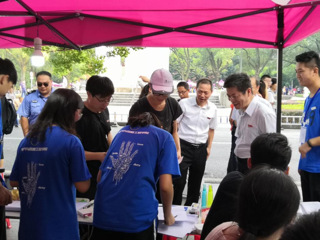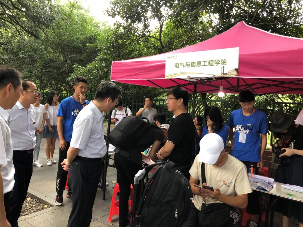 8月24日下午,党委书记邓卫教授、副董事长李树涛教授、学工部部长宋杰老师前往电气院东方红广场迎新点看望前来报到的2019级新生,与新生亲切交谈,并寄予亲切的问候以及美好的祝愿。