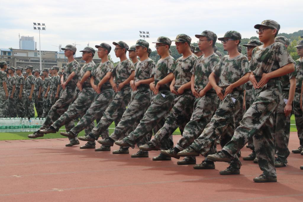 上午,淋过雨的操场在云朵的遮掩下,躲过了骄阳的曝晒,传来阵阵清凉。新生们身着军装,意气风发,进行了军姿以及齐步行进训练和走正步前的基础训练—端腿练习。从刚开始的手忙脚乱,到后来的整齐划一,他们取得了很大的进步。在休息时间里,大家的活动也是丰富多彩,才艺表演、游戏、拉歌,为枯燥的军训增加了阵阵欢声笑语。