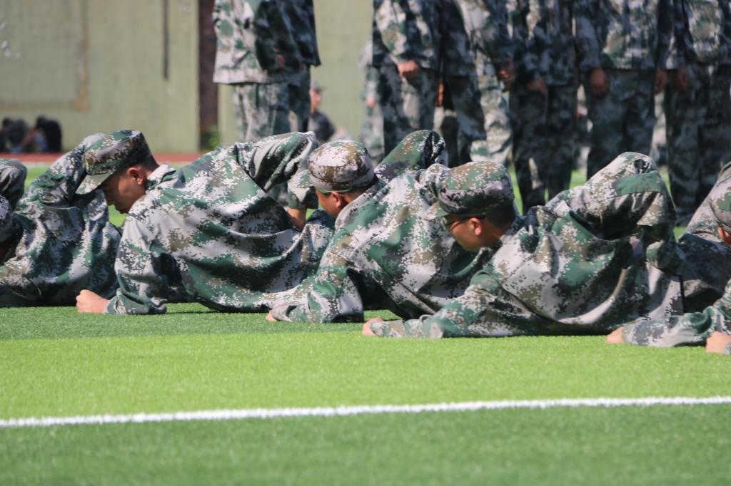 到了下午,太阳又一次降临,大家的训练也有了新的进展。正步的初步练习,也让大家看到了自己很多的不足,经过一定的练习,也让大家感受到了自己的进步。今天,第一次进行了战术练习。卧倒在地,感受着强烈的高温;匍匐前进,忍受着草地的摩擦。经过磨炼,大家的意志也变得更加坚强。